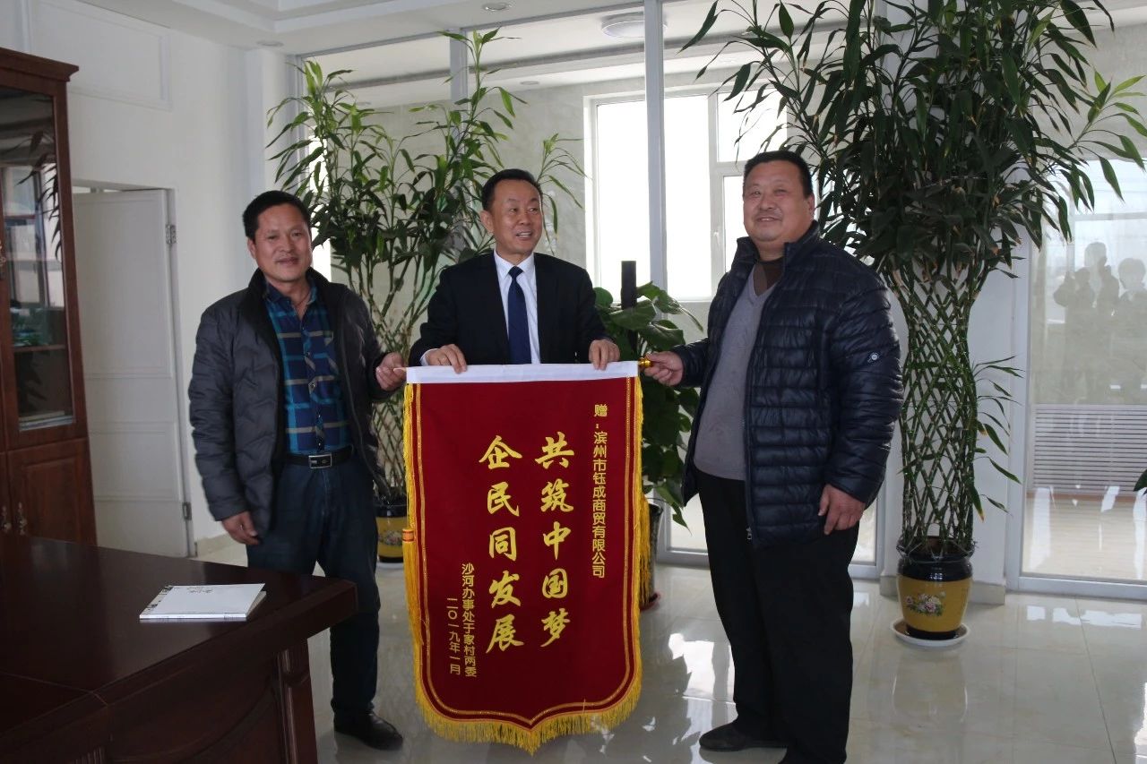 1月30日,于家村“兩委”將一面寫著“企民同發(fā)展 共筑中國夢”字樣的錦旗送到了濱州鈺城商貿(mào)有限公司,感謝企業(yè)一年來對于家村發(fā)展所做的貢獻,這也是我辦“村企共建”的典型事例。通過村企共建,有效的推進了企業(yè)和農(nóng)村和諧共處、相互促進、共同提高。