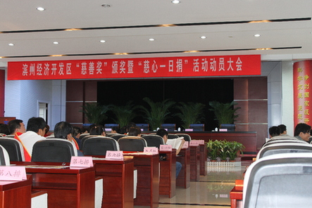 濱州傳媒網(wǎng)訊(記者郭瑩 通訊員李華)2011年5月26日上午,開發(fā)區(qū)隆重舉行2010年度“慈善獎”頒獎和2011年度“慈心一日捐”活動動員大會。會議由開發(fā)區(qū)黨工委委員、主任助理、公安分局局長張愛國同志主持,黨工委書記、管委會主任姚和民同志到會并作重要講話,會議表彰了2010年度為慈善事業(yè)做出突出貢獻的單位和個人,區(qū)黨工委委員、管委會副主任、慈善總會會長馬景澤同志接收了7家企業(yè)的捐贈,其中,福豪鋼材市場管理有限公司認捐基金200萬元,海得曲軸有限責任公司認捐基金200萬元,華晨新型建材有限公司認捐基金100萬元,中大兆華牧業(yè)科技有限公司認捐基金100萬元,金河房地產開發(fā)有限公司認捐基金100萬元,